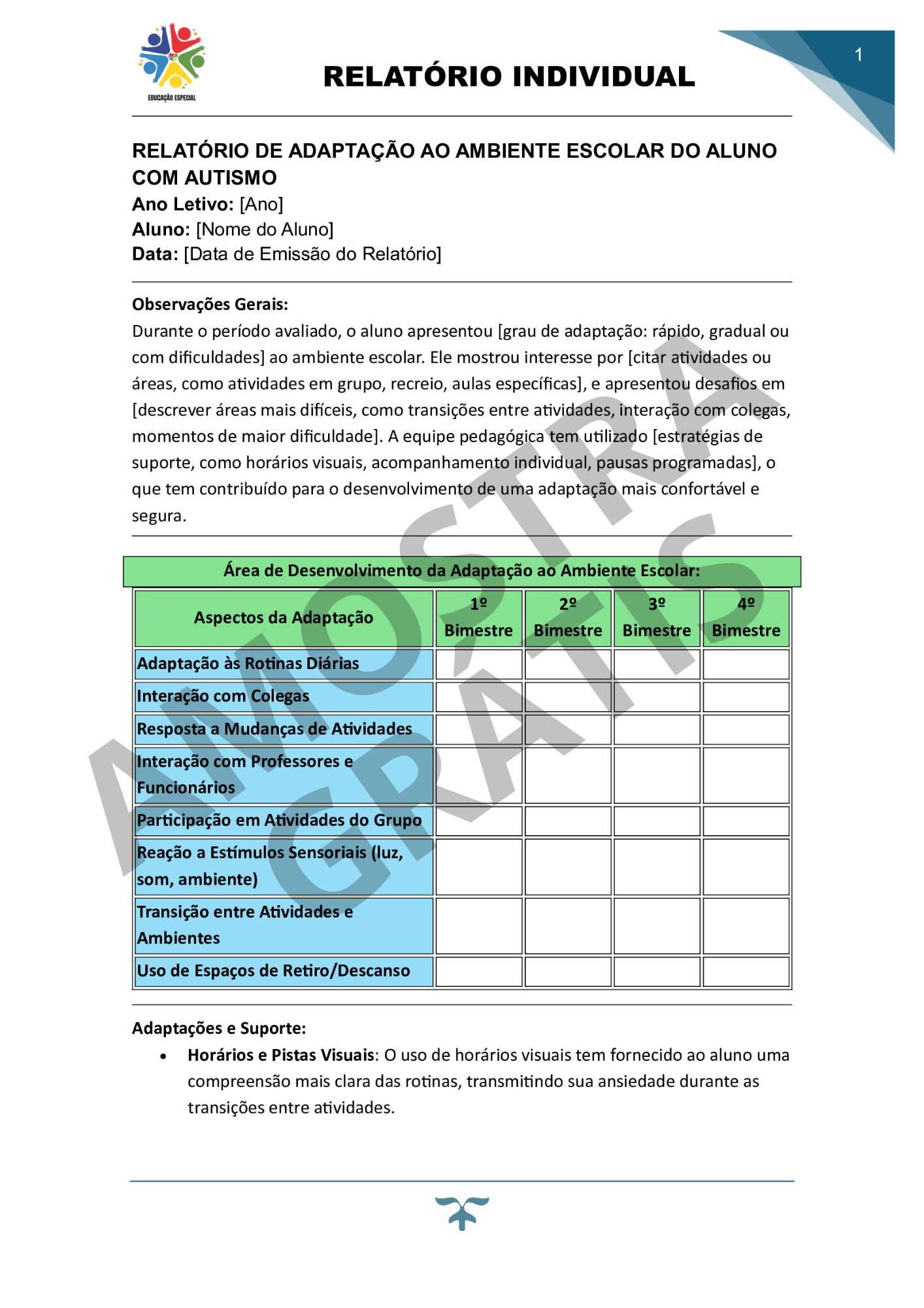 Tenha em mãos modelos técnicos prontos e validados, pensados para agilizar sua rotina e elevar a qualidade dos seus relatórios para alunos com tea.