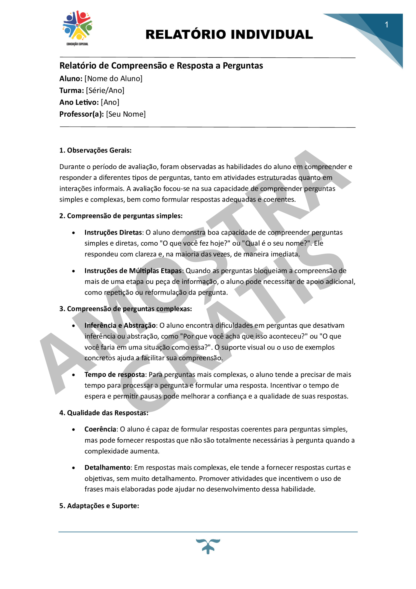 Relatório de Compreensão e Resposta a Perguntas do Aluno com Autismo