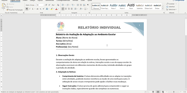 Relatório de Adaptação ao Ambiente Escolar do Aluno com Autismo